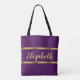Zwei Imitate Goldbänder, und eine Vorlage für Ihren Namen in einem handgeschriebenen Stil Skript, goldenen Buchstaben. Dunkle lila Hintergrundfarbe.