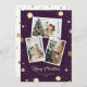 Elegantes lila und goldenes Foto Frohe Weihnachtskarte mit Schneeflocken und fallendem Schnee. Personalisieren Sie diese wunderschön gestaltete Foto-Urlaubskarte einfach mit Ihren Fotos und Texten. Weitere Farboptionen sind verfügbar.