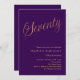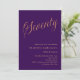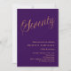 Eine moderne, stilvolle Einladung zu einer 70. Geburtstagsfeier. Ein lila Hintergrund und das Wort Siebzig geschrieben mit eleganten großen Schriftzeichen in Imitat Gold. Personalisieren und fügen Sie einen Namen und Party-Details hinzu.