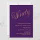 Eine moderne, stilvolle Einladung zu einer 90. Geburtstagsfeier. Ein lila Hintergrund und das Wort 90 mit eleganten großen Schriftzeichen in Imitat Gold geschrieben. Personalisieren und fügen Sie einen Namen und Party-Details hinzu.