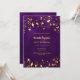 Eine moderne, stilvolle und glamouröse Einladung für eine 40. Geburtstagsfeier (oder jedes Alter). Ein tiefer lila Hintergrund mit Imitaten goldenen Sternen. Die lila Farbe ist ungleichmäßig. Der Name ist mit einem modernen handgeschriebenen Stilskript geschrieben. Personalisieren Sie Ihre Party-Daten und fügen Sie sie hinzu.