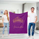 Eine Imitate goldene Königin Prinzessin Krone, tiara auf einem eleganten und mädchenhaften lila Hintergrund. Personalisieren und fügen Sie einen Namen, goldene Buchstaben. Der Name ist mit einem modernen handgeschriebenen Stilskript geschrieben.