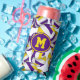 Lila Goldvolleyballmuster mit Monogramm Selters Dosenkühler