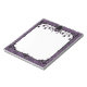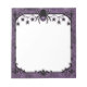 Dieses überaus elegante Notizblock weist eine lila, tiefe Grenze auf, die mit Spinnweben und verziertem schwarzen Scrollwork gemustert ist. An der Spitze schafft eine große Spinne mit kleineren schwindelerregenden Spinnen einen spielerischen, aber sprichwörtlichen gotischen Look. Der knallige weiße Schreibraum kontrastiert wunderschön mit dem dunklen Rahmen, wodurch jede Note durch unheimliche Eleganz hervorsticht.