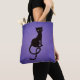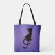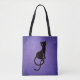 Wunderschöne schwarze Katze auf der ganzen bedruckten Tüte mit einer Vektorgrafik der Silhouette einer bösen Katze mit einem wunderschön geschliffenen Schwanz über lila texturiertem Hintergrund. Seine bösen Augen leuchten im Dunkeln. Diese böse Kätzchentasche wird zu Halloween großartig sein, denn schwarze Katzen sind dieses Symbol dieses Urlaubs. Sie können diesen schönen Katzenbeutel in Rot und Blau sehen. Karo einfach in meinem Laden aus der Sammlung der Bösen Katzen.