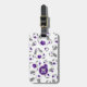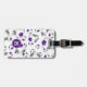 Dieses soccer-Thema Gepäckanhänger zeigt ein zufälliges Muster von Fußballbällen unterschiedlicher Größe - die typischen schwarzen Tafeln der Fußbälle wurden lila und grau aufgezeichnet - personalisieren Sie mit Trikot oder Monogramm vorne, Adressangaben auf der Rückseite - von katz_d_zynes