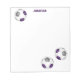 Dieses lustige Fußball-Notizblock verfügt über 3 kleine, zufällig arrangierte Fußballbälle, die lila, graue und weiße Paneele haben - mit dem Namen des Athleten/Fans/Coachs personalisieren - von katz_d_zynes