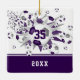 Dieses coole Mädchensoccer-Ornament besticht durch eine "Explosion" verschiedener Fußballbälle mit lila, grauen und weißen Tafeln und grauen und lila Sternen, auf denen man seine Trikotnummer personalisieren kann - der lila Stern hat ein winziges Muster weißer Polka-Punkte - und den Namen des Athleten auf der Vorderseite und auf der Rückseite auf einem lila Streifen am unteren Rand des Ortes anpassen kann nament - katz_d_zynes