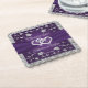 Dieser hübsche, maßgeschneiderte Untersetzer koordiniert mit der lila und grauen Liebe Herzen Hochzeitskollektion und hat einen simulierten silbernen Rand um die Außenseite, geschmolzen Rand mit einem lila Hintergrund für die grauen Formulierungsdetails, mit denen Sie es personalisieren können. Es gibt eine lila Schleife und ein harmonisches Herzbild, das die gesamte Breite des Papiers und die Blume in silberfarbenem Look umwickelt, indem man die Formulierung umschreibt, die besagt: "Gefällt der Liebe!" über dem Band, mit den Namen des Ehepaares und dem Hochzeitsdatum unter dem Band.