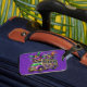 LILA & GREEN MARDI GRAS BUS & FEATHERS GEPÄCKANHÄNGER
