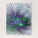 Lila grüne Blume Moderne Abstrakt Art Monogram Puzzle