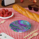 Lila, grüne und blaue Fluid Art Marmor Pappteller