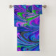 Lila grüner und blauer abstrakter gemarmorter badhandtuch set