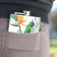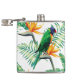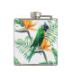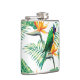 Lila Grüner und Orangenpapagei und Blume Flachmann