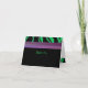 Ein modernes Design mit schwarzem Hintergrund, der durch einen Rand von grünen und schwarzen Zebrastreifen über die Oberseite verstärkt wird. Ein schattiertes lila Band betont es. Die Worte "danke" können nach Wunsch geändert werden. Innen auch Nachricht!