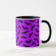 Diese Tasse zeichnet sich durch ein sprichwörtliches Muster schwarzer Fledermäuse mit gelben Augen auf einem lila Hintergrund aus, die perfekte Halloween-Tasse für Fledermausliebhaber.