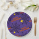 Benutzen Sie diese fantastischen Teller, um Ihre Halloween-Veranstaltungen zu dekorieren. Das Design ist mit Spinnen und Spinnweben ausgestattet, mit orangefarbenem Happy Halloween auf lila Hintergrund.