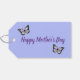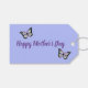 Nachricht ist "Happy Mother's Day" auf einem lila Geschenktag mit zwei Schmetterlingen.