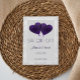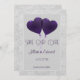 Personalisieren Sie eine einmalige Hochzeitsankündigung mit einem Lila Herzballon Save the Date. Das Design der Ankündigung zeichnet sich durch ein Paar Herzballons vor einem zarten, spitzen Damast-Hintergrund aus. Zusätzliche Ankündigung Datum freihalten für dieses Design in verschiedenen Farben verfügbar.