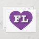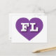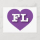 Diese Postkarte zeigt ein pulsierendes lila Herz mit den fett-weißen Großbuchstaben FL, der offiziellen Abkürzung für Florida, dem sonnigen Staat. Die Rückseite der Postkarte ist leer und wartet auf Ihre handgeschriebenen Stimmungen oder Ihren personalisierten Text.