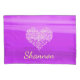 Mädchen und Frauen für ein Mädchenzimmer. vorne: Ein Herz, das Symbol der Liebe in lila Farbtönen, gefüllt mit strahlenden Sternen für eine Touch des alltäglichen Glamours. Farbtöne lila als Untergrund in horizontalen Streifen. Passen Sie den Namen, hellgelbe Buchstaben an und fügen Sie ihn hinzu. Zurück: nur Lila und rosa Streifen