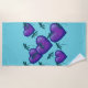Hübsche Lila Herzen und türkisfarbene Libellen auf diesem großen Strandtuch. Ideal für einen Tag am Strand oder am Pool, Picknick oder Wellness-Center! 177,8 cm x 88,9 cm Material: Vorderseite aus Polyestermix, Rückseite aus 100% Baumwolle. Die Veröffentlichung ermöglicht einen lebendigen Druck, der auf Dauer angelegt ist. #beach #towel #herzen #Liebe #lila
