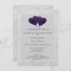 Einladend zu Ihrem Probe Dinner mit einer Lila Heart Balloons Hochzeit Probe Dinner Einladung. Das einladende Design bietet ein Paar Herzballons vor einem zarten, spitzen Damast-Hintergrund. Personalisieren Sie die Namen des Bräutigams und der Braut zusammen mit den Details zum Abendessen der Probe. Mit diesem Design sind auch weitere Hochzeitswaren erhältlich.