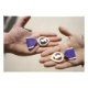 Lila Herzempfänger zeigen ihre Medaillen in ihren Händen, die mit Auszeichnungen versehen sind.