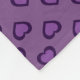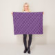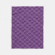 Diese Fleecedecke weist ein sich wiederholendes Muster von zweifarbigen lila Herzen auf einem lila Hintergrund auf.