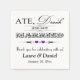 Diese trendigen Hochzeitsnapkins im Poster-Stil bieten eine Vielzahl an Schriftart mit Rollen und ein Paar lila Herzen. Es gibt eine lustige neue Einnahme auf das Essen, Trink und Verheirateten Trend, mit ein wenig spielen auf Wörtern, die sagen "Ate, Drank, And Got Verheiratet", um die frühere Hochzeitsveranstaltung. Personalisieren Sie es mit den Namen der Braut und Bräutigam und dem Hochzeitstag. Es wäre perfekt für eine Post Hochzeit Empfang. Wenn Sie weitere passende Artikel in diesem Design benötigen, senden Sie Ihre Anfrage bitte an niteowlstudio@gmail.com.