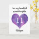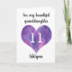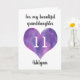 Eine personalisierte Aquarellenkarte zum 11. Geburtstag für Enkelin mit lila Herz. Sie können das Herz mit dem Alter, das Sie brauchen, personalisieren und ihren Namen unter das Herz tragen. Die Insider-Kartennachricht liest eine herzliche Geburtstagsnachricht, die Sie leicht personalisieren können, wenn sie gewollt wird. Auf der Rückseite dieser Herzkarte steht Happy Birthday. Ein wunderbarer Geburtstagsgebet für sie.