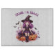 Lila Hexenkürbis und Fledermäuse tricksen oder beh Schneidebrett