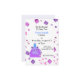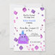 Ein großer lila Hippo mit einem Party, der für eine Geburtstagsparty vorbereitet ist, betont diese lustige Einladung. Eine Grenze von Würfeln und lustigen Designs fügt einen Spaß Anziehungskraft. Passen Sie Ihre Daten nach Wunsch mit Ihren Daten an.