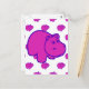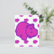 Lila Hippo mit blauer Kontur und Hippo-Muster im Hintergrund. Wildtier, großer Mund, Zähne, niedlich.
