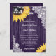 Diese elegante Blumen-Hochzeitseinladung mit Sonnenblumen vor einem Stallholzboden, der mit Lichtern und weißer Blütenpracht geschmückt ist, lädt Ihre Gäste zu einer lila Hochzeitsfeier im rustikalen Land ein, die von Sonnenblumen inspiriert wird. Diese Vorlage kann einfach mit Ihren Hochzeitsdetails personalisiert werden.