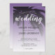 Eine schicke Hochzeit in Urlaubsort mit einem tropischen Palmendesign auf einem lila Hintergrund mit elegantem Drehbuch und moderner Typografie. Das lila Licht verblasst auf einem weißen Hintergrund. Fügen Sie einfach Ihre Hochzeitsdetails zu dieser stilvollen Tropenstrandhochzeit ein. Exklusiv für Sie entworfen von Happy Dolphin Studio.