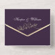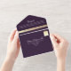 Eine stilvolle und raffinierte Hochzeitseinladung in reichhaltigem lila, mit handgezeichnet Goldliedern und einem individuellen Foto des Ehepaares auf der Rückseite. Dieses zeitgenössische Design verkörpert elegant Liebe und Verbindung. Personalisieren Sie mit Ihrem Foto, Ihren Hochzeitsdetails und UAWG Informationen für eine wirklich einzigartige Touch.