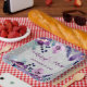 Lila Hochzeit mit Flora und Glitzer Pappteller