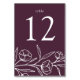 Elegante Blumenkarten mit weißgezeichneten Blume und Blätter am unteren Ende des Designs mit lila Hintergrund. Personalisieren Sie die gezeichneten Blumenkarten mit der Tischnummer in klassischer Weißschrift. Um die Tischkarten zu bestellen, editieren und fügen Sie jede Zahl einzeln in Ihren Warenkorb ein, dann Karo aus, wenn Sie fertig sind. Entworfen, um mit unserer Hochzeitskollektion Sketched Floral zu koordinieren.