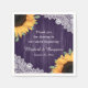 Entdecken Sie Ihre lila rustikale Hochzeitsfeier mit diesen eleganten Botanischen Servietten, die mit Sonnenblumen und Grünpflanzen auf einem lila Holzfußboden und spitzen Lichtern geschmückt sind.