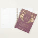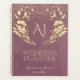 Glamouröses, luxuriöses, lila Hochzeitsplanerbuch mit abstraktem Goldrahmen-Monogramm - Initialen von Braut und Bräutigam.