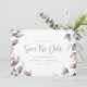 Lila Hochzeit speichert das Datum. Diese stilvolle Hochzeit spart das Datum mit einem wunderschönen Aquarellrahmen aus Blätter und Blume, handbemalt in monochromen Farbtönen aus lila, pflaumen und weichen Farbtönen mit lila Drehbuch & Text. Die Rückseite der Einladung enthält den gleichen Rahmen von Blätter. Finden Sie passende Artikel in der eleganten Lila Botanischen Hochzeitssammlung.
