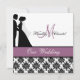 Schwarzweiss-Damastdruck mit einem lila Band, eine Silhouettebraut und -bräutigam und Bereiche, die Sie mit Ihren Namen personifizieren können, Monogramminitiale, Hochzeitszeremonie und Empfangsinformationen über eine kundengebundene wedding Einladung, die nobel und alle in einer traditionell ist!