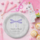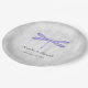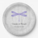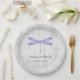 Elegante und einfache Hochzeitspapier-Teller mit lila Libelle vor grauem Grunge-Hintergrund. Dieses Design ist eine einzigartige Wahl für eine moderne Hochzeit. Einfach an Ihre Hochzeitsdetails anpassen. Klicken Sie auf "Anpassen", um weitere Personalisierungsoptionen zu erhalten.