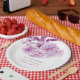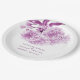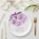 Schöne, schlichte Farbtöne von zarten violetten Blumen und Frühlingsgrün Blätter Hochzeitspapier Teller. Bearbeiten Sie diese Teller mit Ihren Namen und Wörtern. Moderne blümblütige botanische Blume Aquarellmalerei und Design von Sarah Trett. www.sarahtrett.com für www.mylittleedenweddings.com