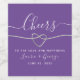 Das elegante lila Hochzeitsweinlabel besticht durch ein romantisches silbernes Seilherz, moderne Kalligraphie und einen gewagten violetten Hintergrund. Ideal, um die Weinflaschen an Ihrem Empfang zu personalisieren oder den Gästen einen unvergesslichen Sake zu schenken.