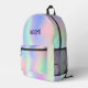 Mädchen in rosa, lila, mint grüner holografischer Hintergrund. Personalisieren und fügen Sie einen Namen, lila Buchstaben.