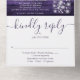 Alles in einem Foto Hochzeitseinladung mit hübschen Saitenlichtern, Maurerkirschen, prächtigen Stilbezeichnungen und schicken Typografien auf rustikalem lila Holzfußboden. Die Einladung enthält eine perforierte RSVP-Karte, die für Sie individuell adressiert oder links als leere Karte für die Handschrift der Adressdaten Ihres Gastes verwendet werden kann. Entwickelt von Thisisnotme©