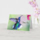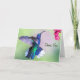 Vielen Dank Karte mit dem wunderschönen violetten Säbel Kolibri in einer anmutigen Pose, fliegen durch einen Nebelwald. Spezielle Karte für Kolibris und Naturliebhaber. Foto aufgenommen in Bosque de Paz Reserva Biologica, Valle del Rio Toro, Alajuela, Costa Rica.