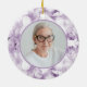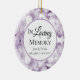 Ehre deinen verstorbenen Liebsten mit den hübschen Lila Hydrangea Blume Wasserfarbe Memorial Keepake Rundweg Keramik Ornament. Personalisieren Sie es mit dem Namen des Verstorbenen, Geburtsdaten / Todesdaten und Bild auf der Rückseite. Dieses elegante, individuelle, blumengeschmückte Tribute-Ornament besticht durch eine digital Aquarell gemalte Blumenfoto mit leichten lila Hydrangea-Blume Blütenblätter mit weißem Hintergrund. Text liest sich im liebenden Speicher.